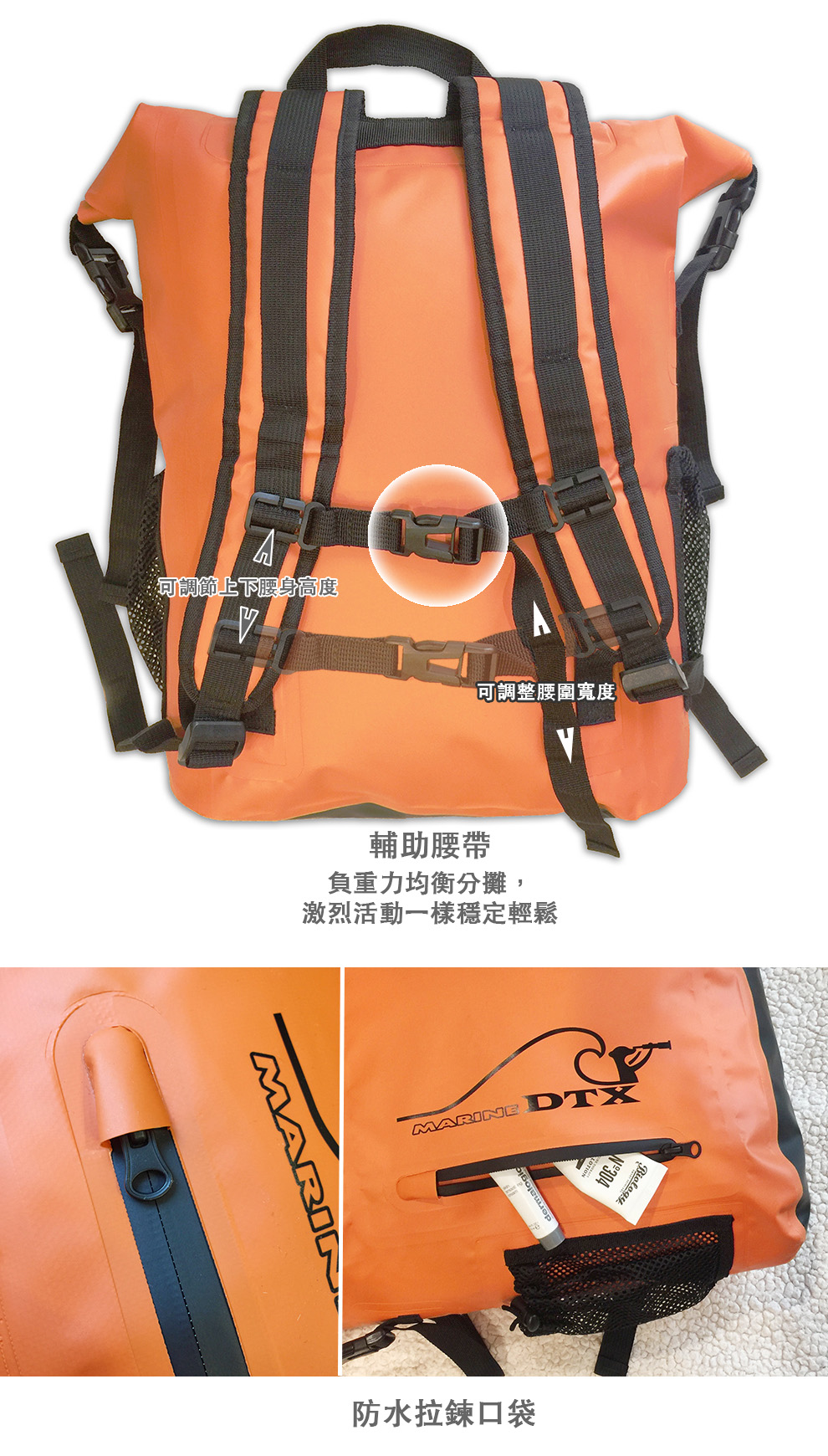 - 包袋的防水效果需視使用狀態而定。不正常的操作使用,勢必會有密封不完全的滲水疑慮。